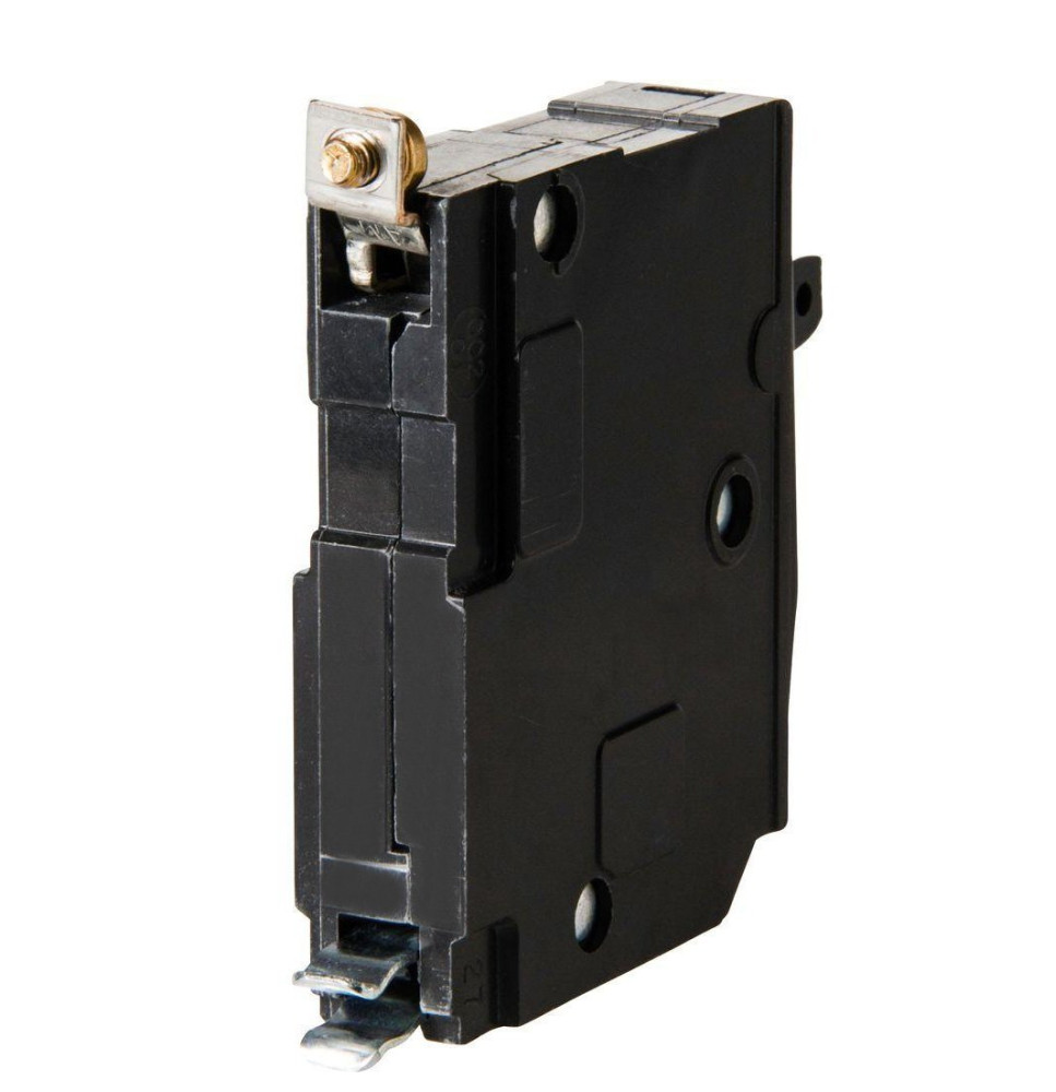Square D bolt-on circuit breaker has a voltage rating of 120/240 Volts current rating of 15 Amps and interrupting rating of 10 kilo-Amps. The 1-Pole thermal magnetic circuit breaker features a lug terminal and accommodates aluminum/copper wire size of 14 - 8 AWG.