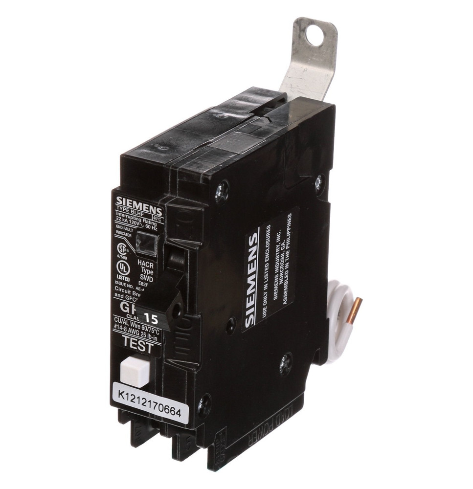 BF115A - Siemens 15 Amp Single Pole GFCI Bolt-On Circuit Breaker