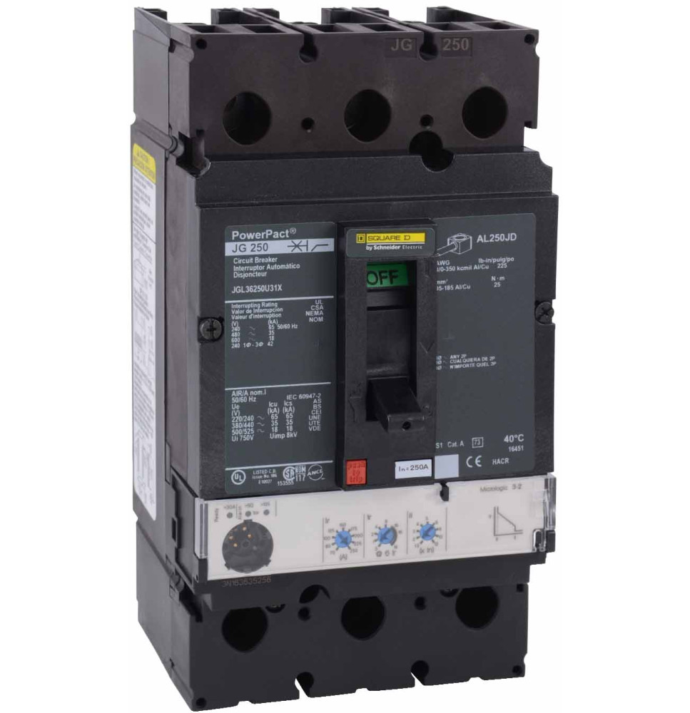 JGL36250U31X - Square D 250 Amp 3 Pole 600 Volt Molded Case Circuit Breaker